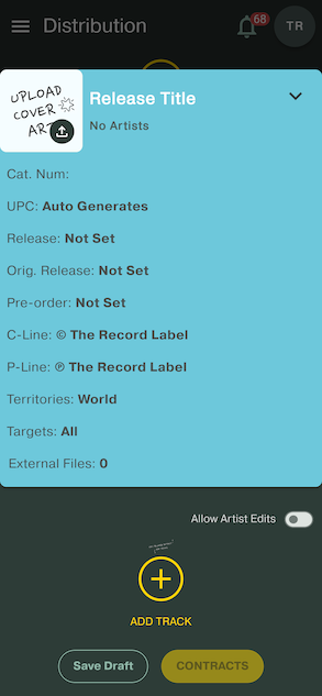 - Allow Artist Edits: if enabled, included artists can change information and add content to releases